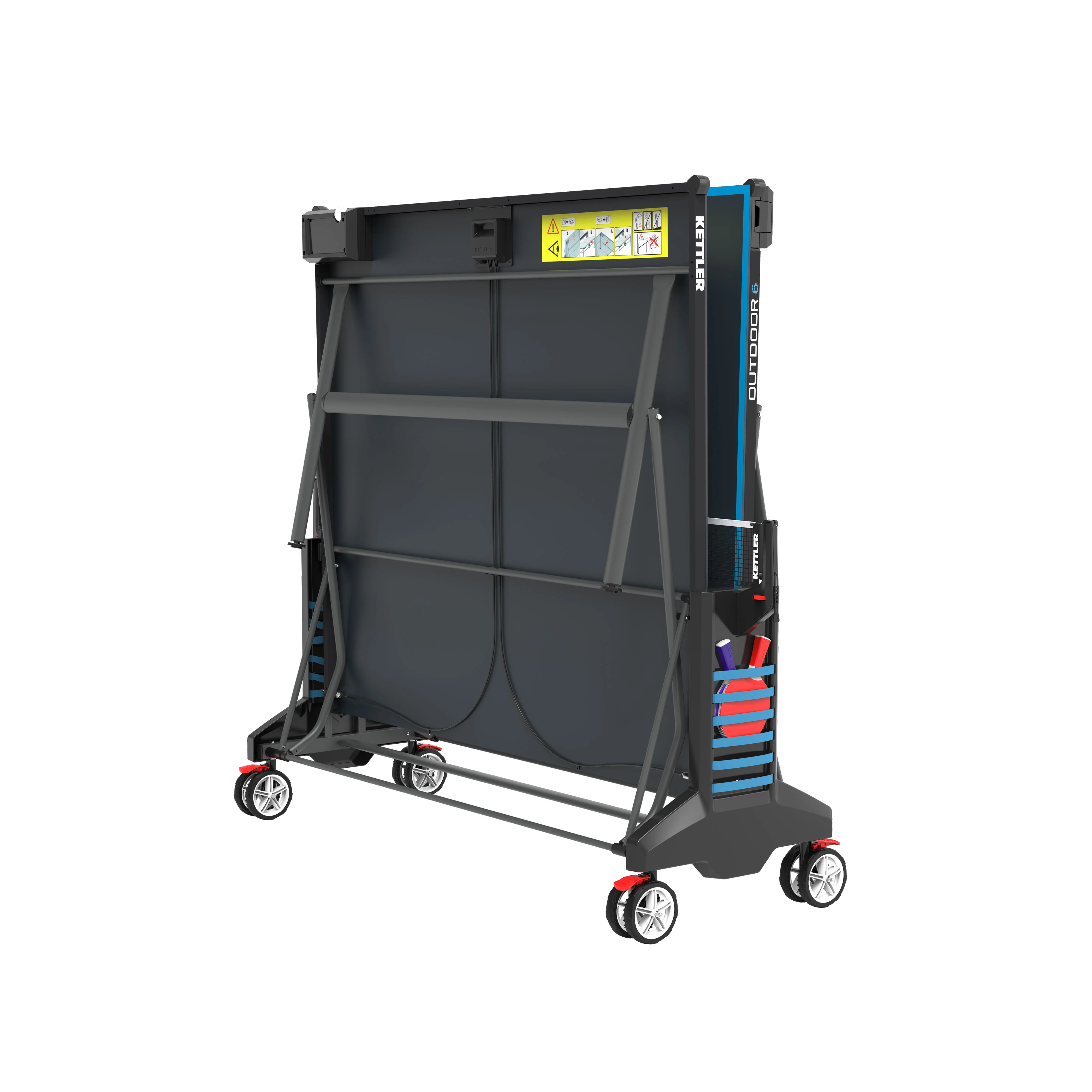 The KETTLER OUTDOOR 6 offers state-of-the-art technology and all the brand’s well-known features. Its KETT-TEC6 outdoor weatherproof top provides durability for outdoor use and offers high performance with true ball bounce. The OUTDOOR 6 includes a one-hand locking mechanism for safe, secure and compact storage, a permanent net system, true play back position for solo play and large wheels with off-road tread for easy transport.